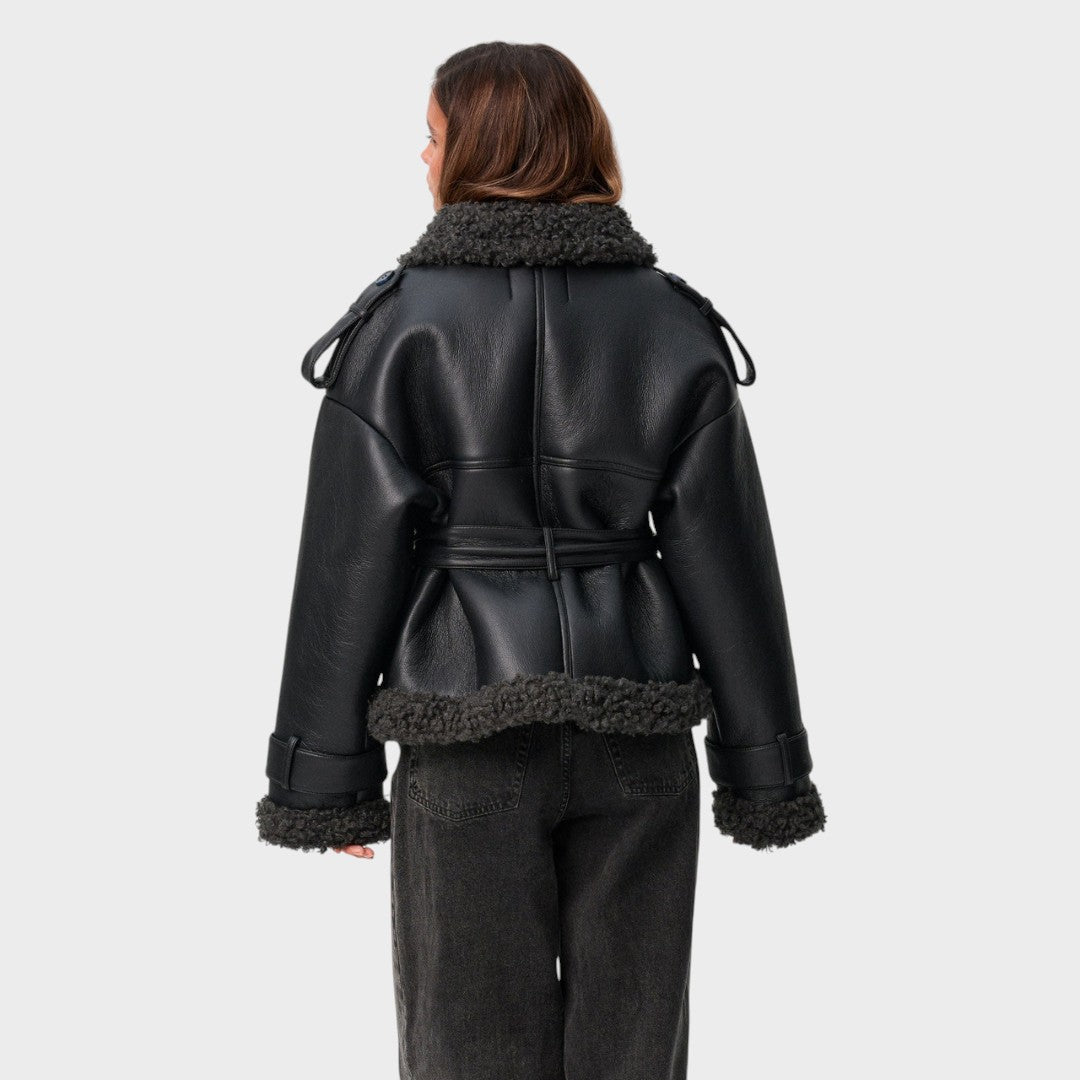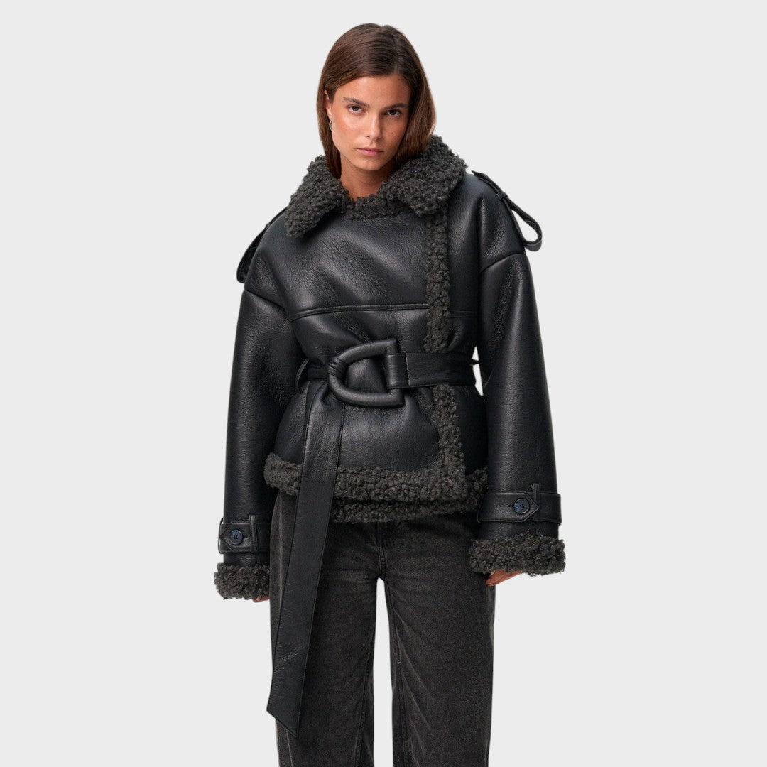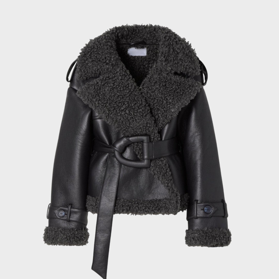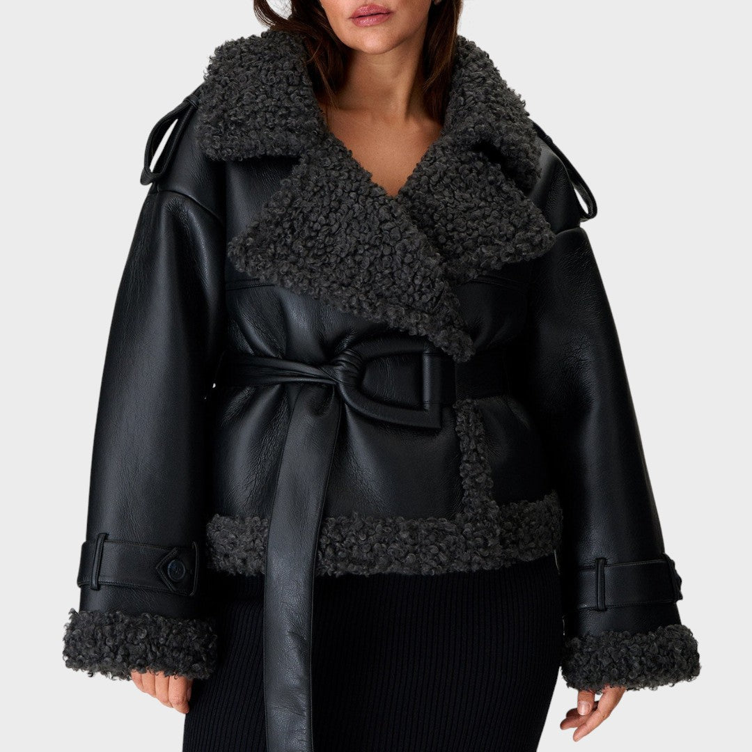 Nikola™ |Kabát z kožušiny s opaskom