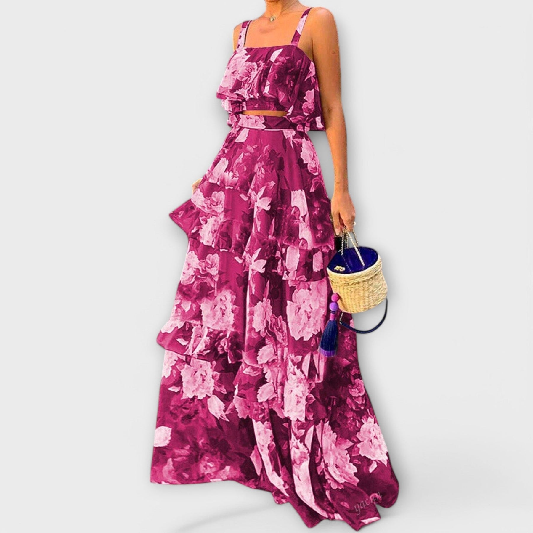 Táto bohémsky inšpirovaná sukňa s kvetinovým dizajnom je perfektná na každú príležitosť. Spaguettové ramienka dodávajú ženský vzhľad, zatiaľ čo normálny strih a neelastická látka zaručujú optimálne pohodlie.