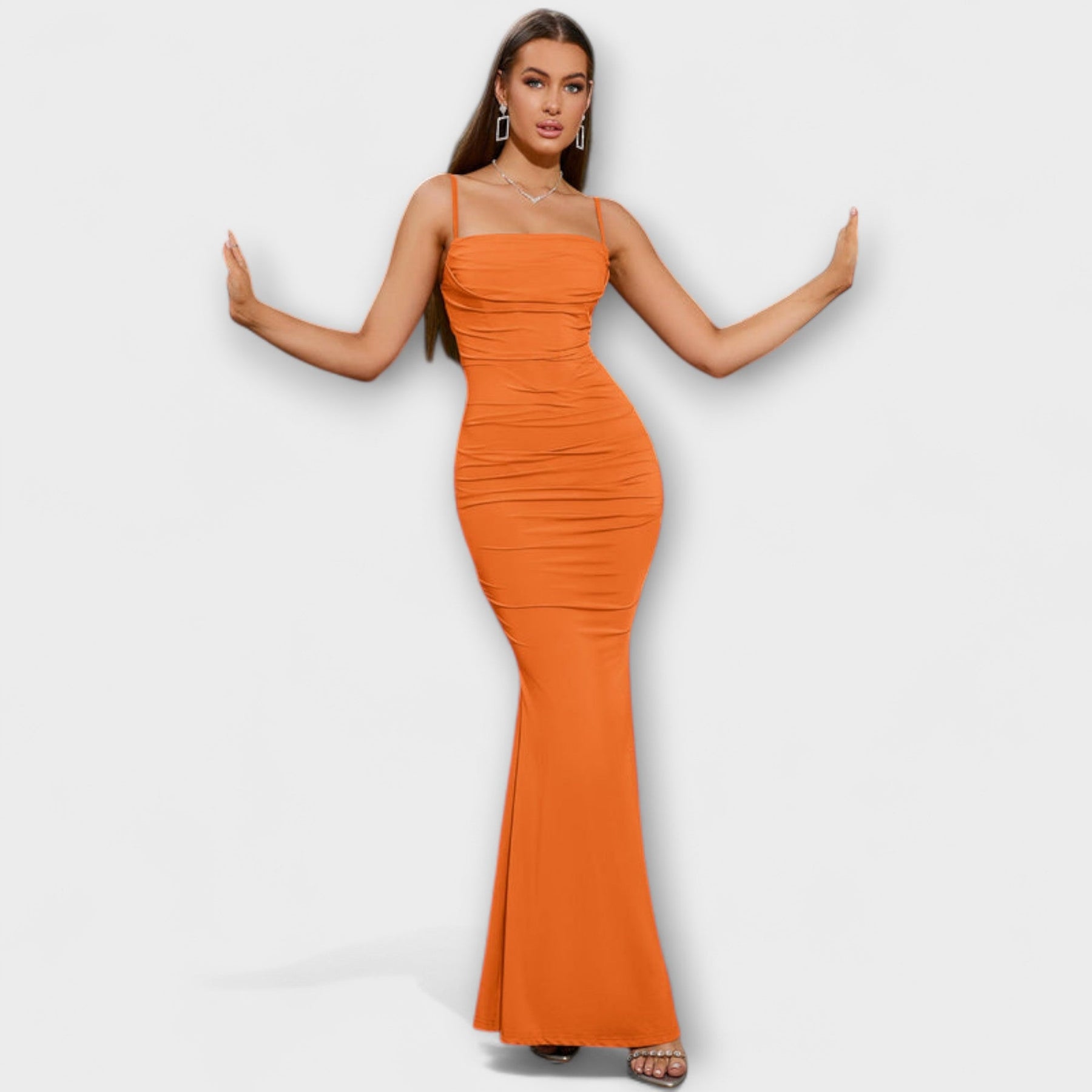 Predstavujeme vám naše úchvatné Šaty s odhaleným chrbtom a Cami strihom, ideálne na to, aby ste na každom podujatí zanechali dojem. Tieto šaty majú elegantný jednofarebný vzor a morskú vílu, ktorá lichotí vašej siluete.