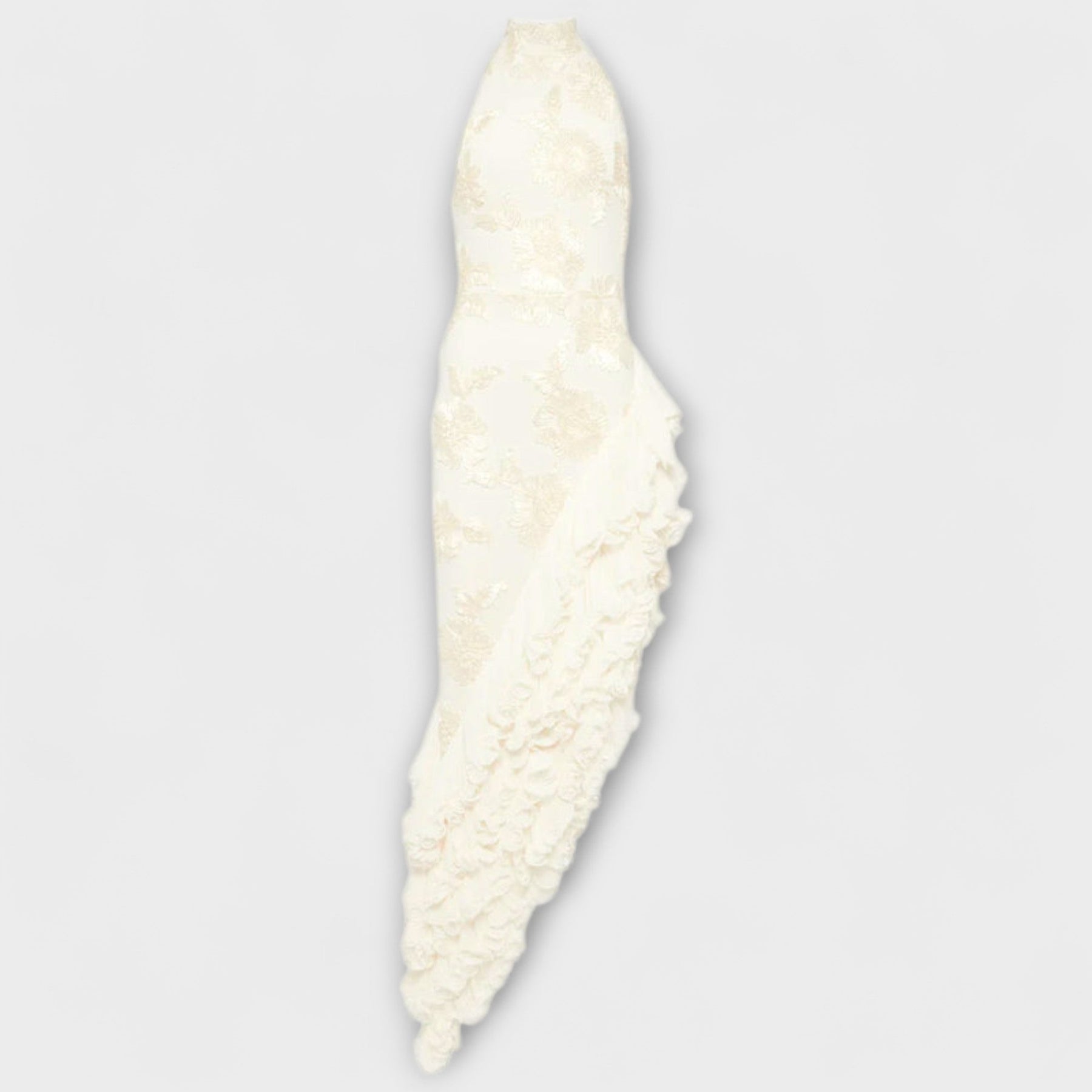 Užite si éterickú eleganciu s našimi maxi šatami s kvetinovými aplikáciami, ohromujúcou zmesou romantiky a pôvabu. Tento očarujúci kus má jemné 3D kvetinové aplikácie, ktoré rozkvétajú na plynulej, dlhé siluete.