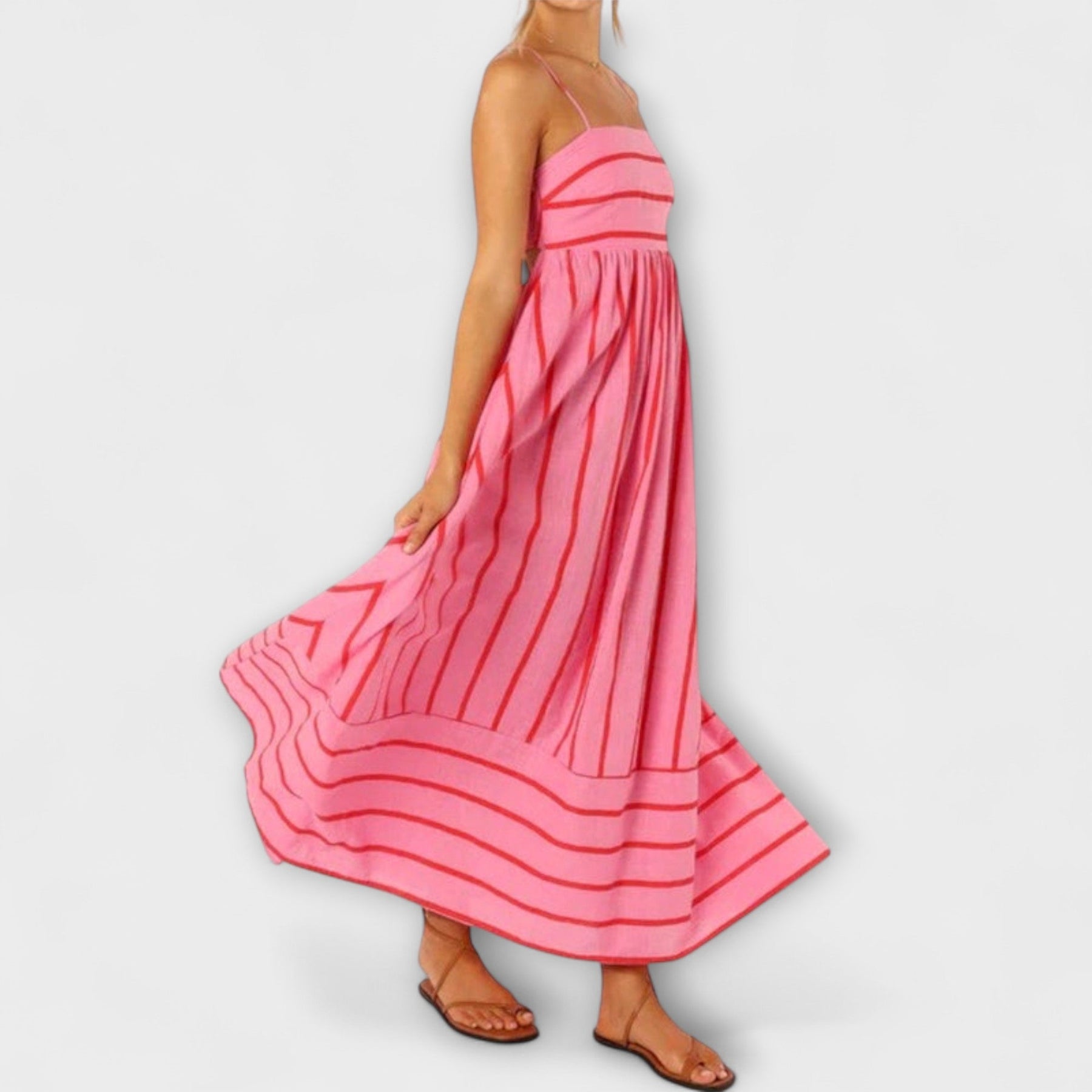 • Dizajn: Plynulá maxi silueta s jemnými romantickými prvkami